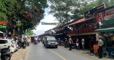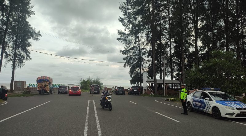 Dua personel Satuan Lalu Lintas Polres Aceh Jaya turun langsung di Jalan Lintas Banda Aceh – Meulaboh, Gunung Ketapang, Kecamatan Krueng Sabee, Kabupaten Aceh Jaya.