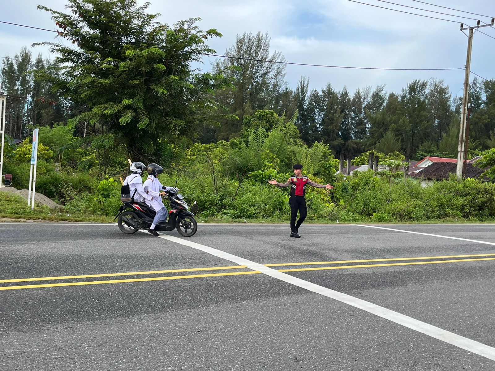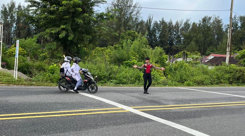 Personel Sat Samapta Polres Aceh Jaya Atur Lalu Lintas Demi Keselamatan Masyarakat dan Siswa Sekolah