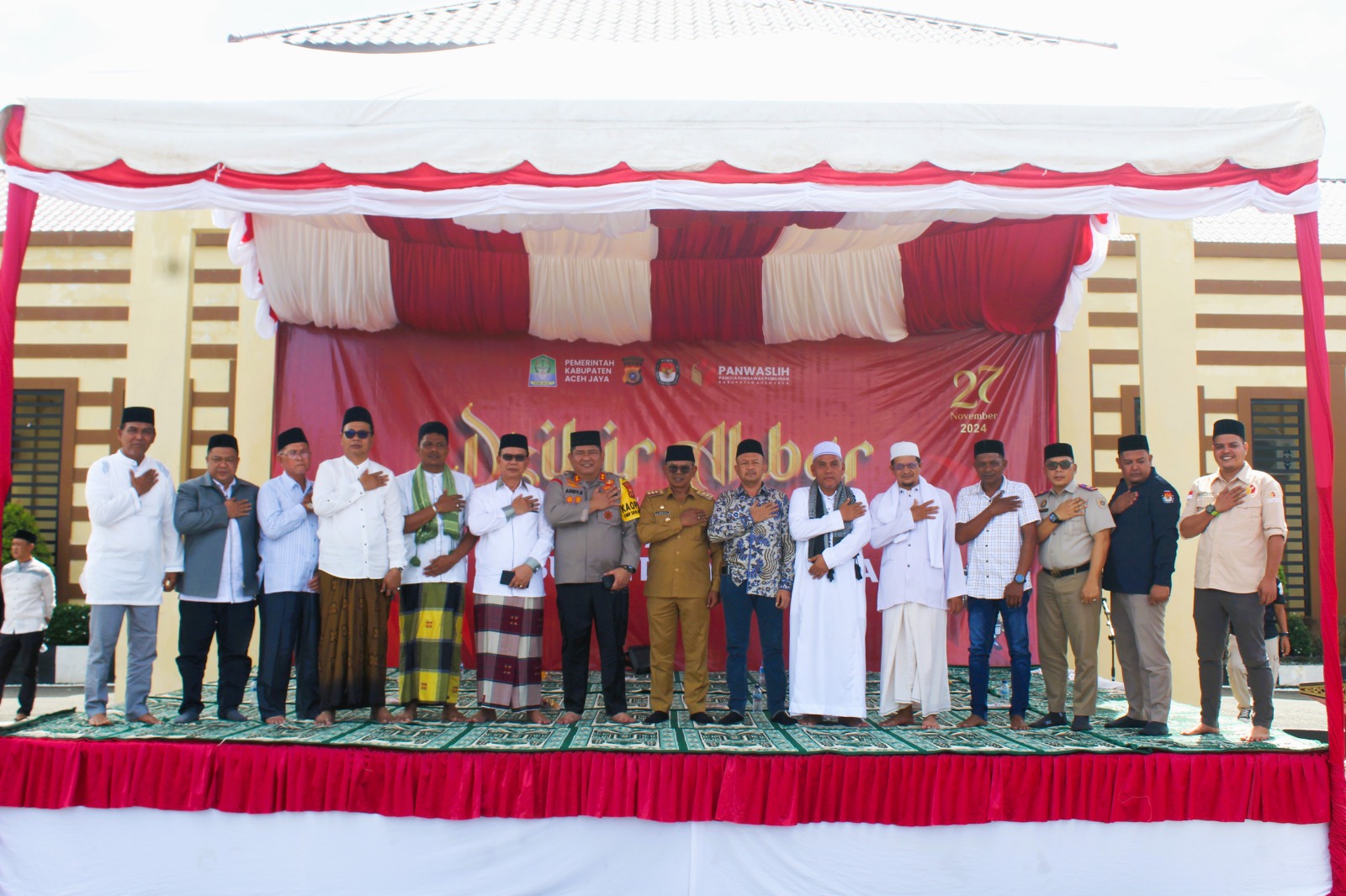 Kapolres Aceh Jaya, AKBP Andy Sumarta, juga memberikan sambutan yang mengajak seluruh elemen masyarakat untuk bersama-sama menjaga stabilitas keamanan selama proses Pilkada. “Dzikir Akbar ini merupakan doa kita agar Pilkada 2024 di Aceh Jaya berjalan aman dan damai. Ini adalah bentuk komitmen bersama untuk menjaga ketertiban dan keamanan di daerah ini,” tegas Kapolres.