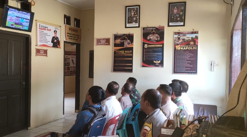 Calang – Para Kapolsek jajaran Polres Aceh Jaya bersama Muspika, Petugas Penyuluh Lapangan (PPL), unsur Sumber Daya Manusia (SDM) Pertanian, serta Kepala Desa mengikuti acara Launching Gugus Tugas Polri Mendukung Program Ketahanan Pangan yang dilakukan secara serentak secara daring di seluruh kecamatan se-Kabupaten Aceh Jaya, Rabu, 20 November 2024.