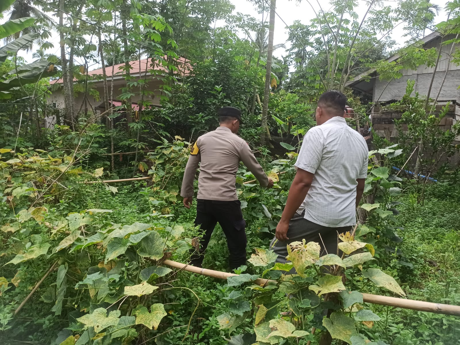 Calang – Dalam rangka mendukung program ketahanan pangan masyarakat, Kanit Binmas Polsek Teunom Aipda Al Kausar bersama Bhabinkamtibmas Bripka Mulyadi melaksanakan peninjauan ke lokasi Perkarangan Rumah Tanaman Bergizi milik warga Desa Tanoh Anoe, Kecamatan Teunom, Kabupaten Aceh Jaya, Jumat, 6 Desember 2024.
