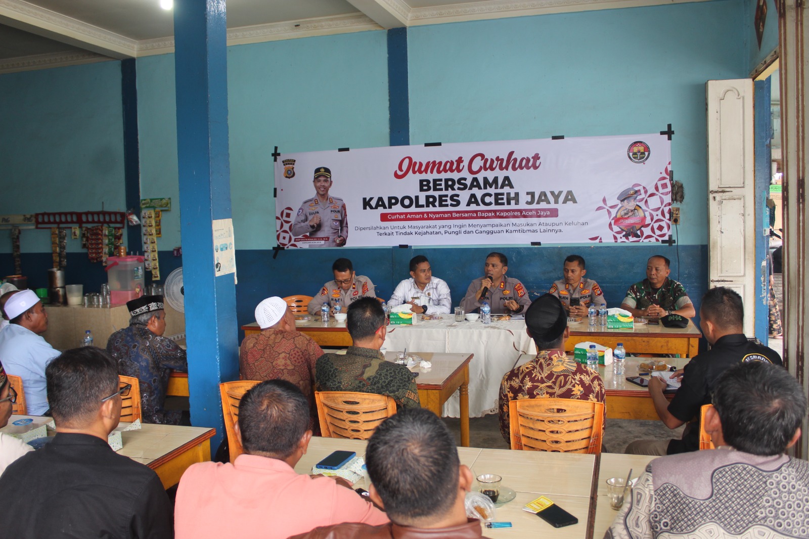 Kapolres Aceh Jaya Dengarkan Aspirasi dan Keluhan Masyarakat Terkait Kamtibmas di Kec. Krueng Sabee Dalam Kegiatan “Jumat Curhat”