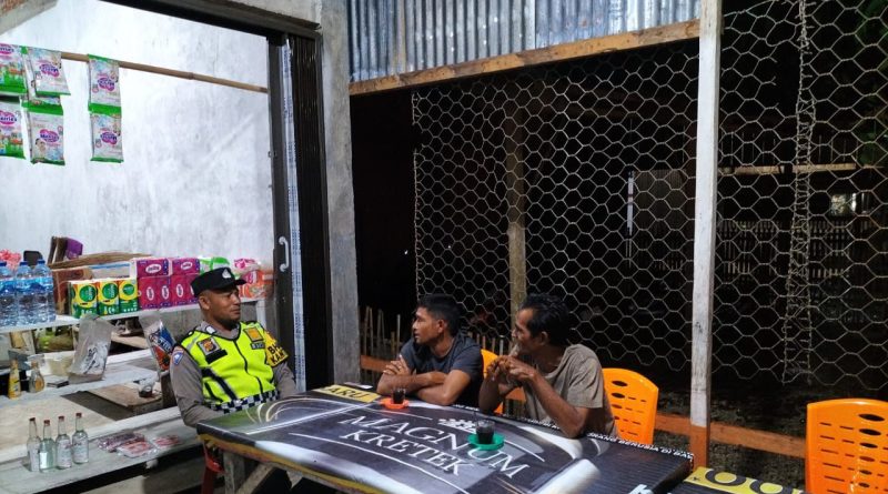 Calang — Dalam upaya menjaga situasi keamanan dan ketertiban masyarakat (Kamtibmas), Polsek Sampoiniet Polres Aceh Jaya melaksanakan patroli malam rutin yang difokuskan pada daerah-daerah rawan gangguan Kamtibmas, seperti warung-warung dan tempat keramaian masyarakat di wilayah hukum Polsek Sampoiniet. Minggu 25 Mei 2025.