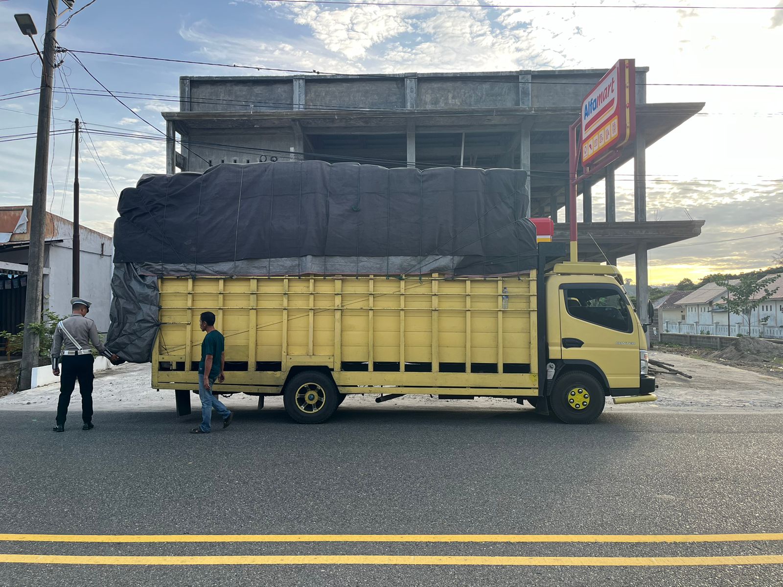 Satlantas Polres Aceh Jaya mengimbau seluruh pengemudi angkutan barang untuk selalu memperhatikan batas muatan dan dimensi kendaraan sesuai peraturan yang berlaku, demi menjaga keselamatan bersama di jalan raya.