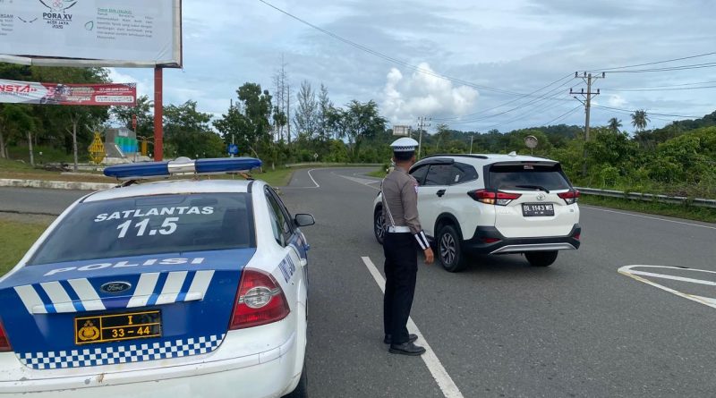 Satlantas Polres Aceh Jaya Edukasi Pengendara di Jalan Lintas Banda Aceh – Meulaboh, Dorong Kesadaran Berlalu Lintas