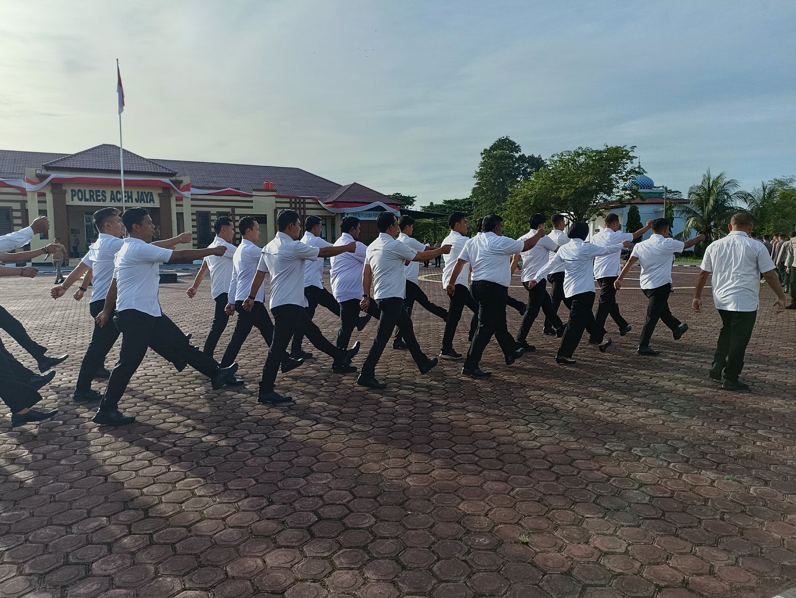 Calang – Dalam rangka meningkatkan kedisiplinan, kekompakan, dan keterampilan baris-berbaris, Polres Aceh Jaya menggelar kegiatan Latihan Peraturan Baris Berbaris (PBB) di Lapangan Apel Mapolres Aceh Jaya, Selasa (12/8/2025) pagi.