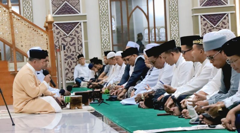 Calang – Dalam rangka menyambut peringatan Maulid Nabi Muhammad SAW 1447 Hijriah, Kapolres Aceh Jaya, AKBP Zulfa Renaldo, S.I.K., M.Si., menghadiri kegiatan keagamaan berupa Shalat Maghrib berjamaah dan pembacaan Barzanji di Masjid Baitul Izzah, Calang, pada Kamis (4/9/2025) malam.