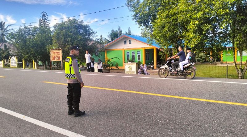 Personil Polsek Panga Laksanakan Strong Point, Cegah Laka Lantas di Wilayah Kecamatan Panga
